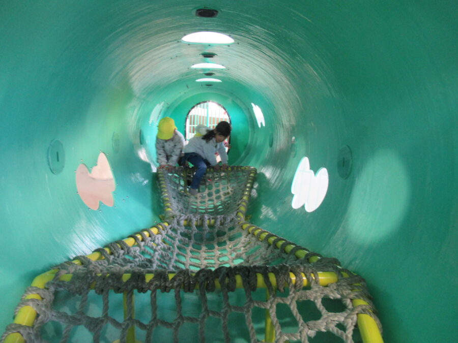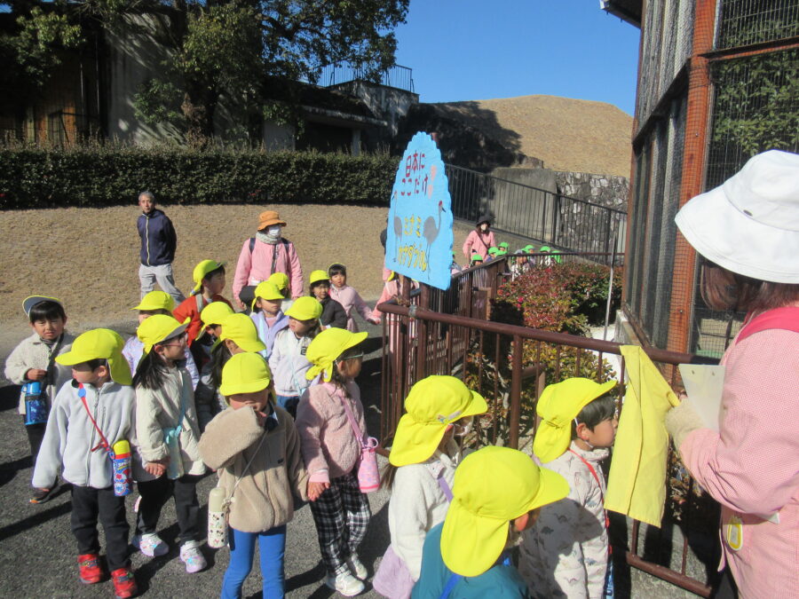 年中児が、鞍ヶ池公園へ園外保育に出かけました。「どんな動物がいるのかな?」と、朝からわくわくしていた子どもたち。公園ではヤギやシカ、ミナミカナダヅルなど、たくさんの動物を見ることができました。じっと観察したり、「大きいね!」「動いたよ!」と嬉しそうに話したりする姿が見られました。その後は室内のプレイハウスへ。大型遊具で思いきり体を動かし、元気いっぱい遊びました。