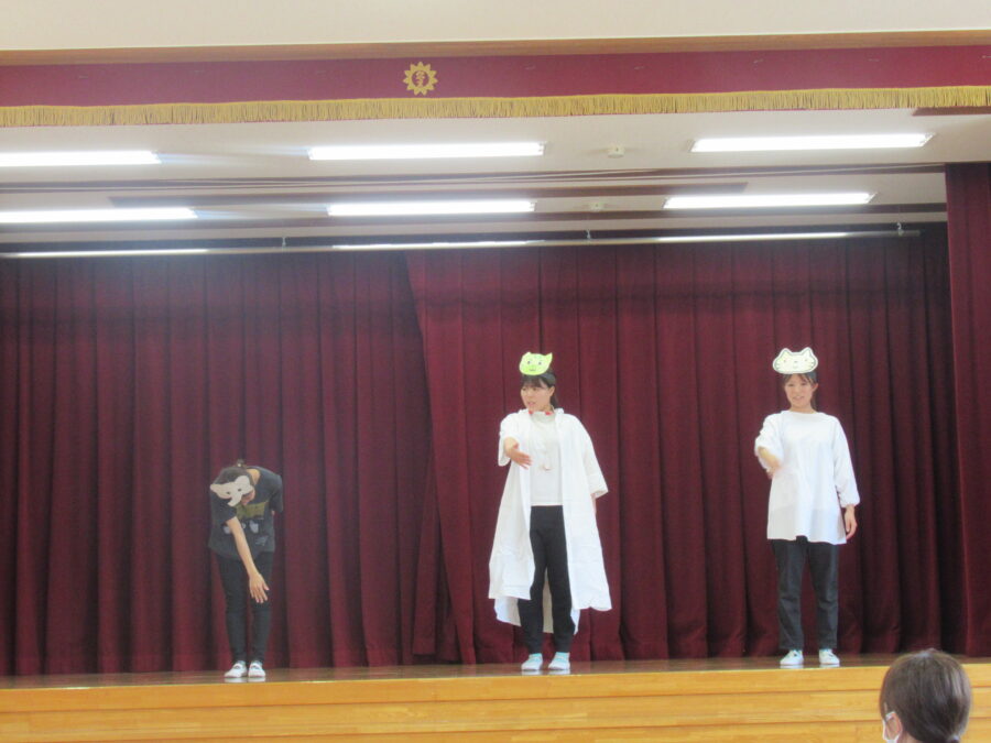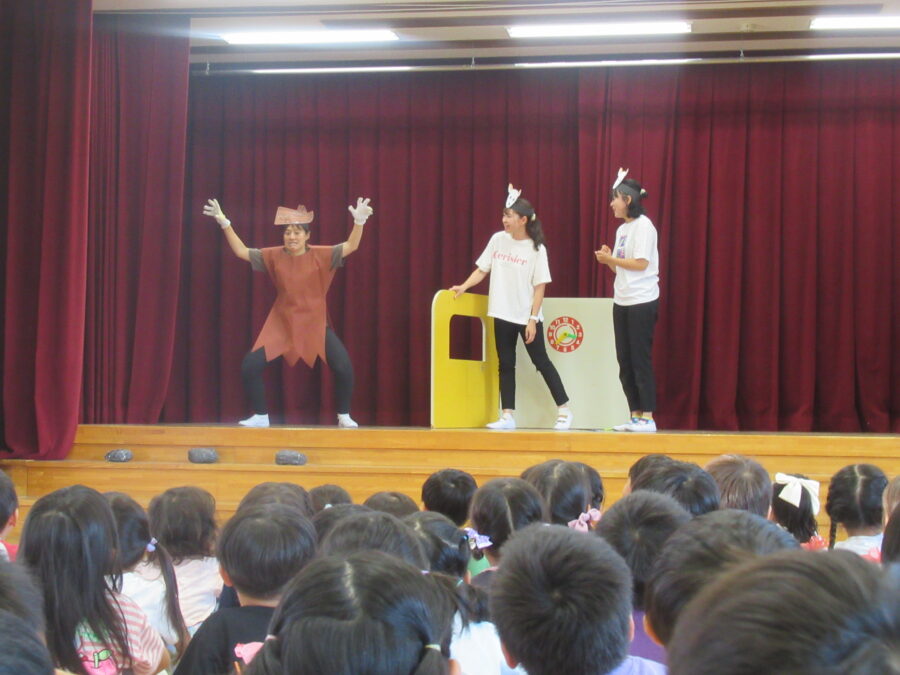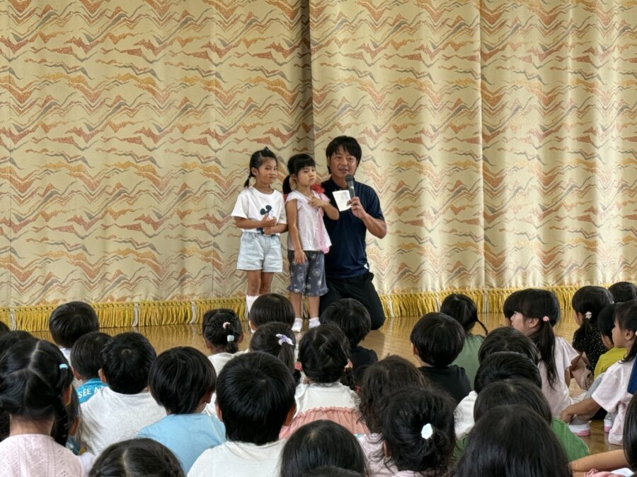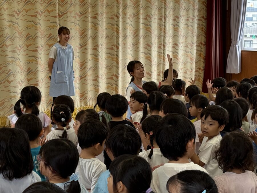 長かった夏休みを終え、みんなが元気に遊戯室に集まりました。園長先生からのお話と1学期の終業式でした「夏休みの約束」を再びみんなで確認し、安心して2学期を迎える準備ができた一日です。先生たちからは、それぞれの楽しかった夏休みの体験が語られ、「友だちと北海道に旅行に行った」など、子どもたちが共感できるお話がたくさん聞こえました。職員劇は「ねこのおいしゃさん」でした。そして、「さあ、2学期は新たなチャレンジの始まりです」と、仲間と協力して成長しようというメッセージが伝えられました。笑顔と元気を大切に、今日からまた一緒に学び、遊び、充実した毎日を送っていきましょう!