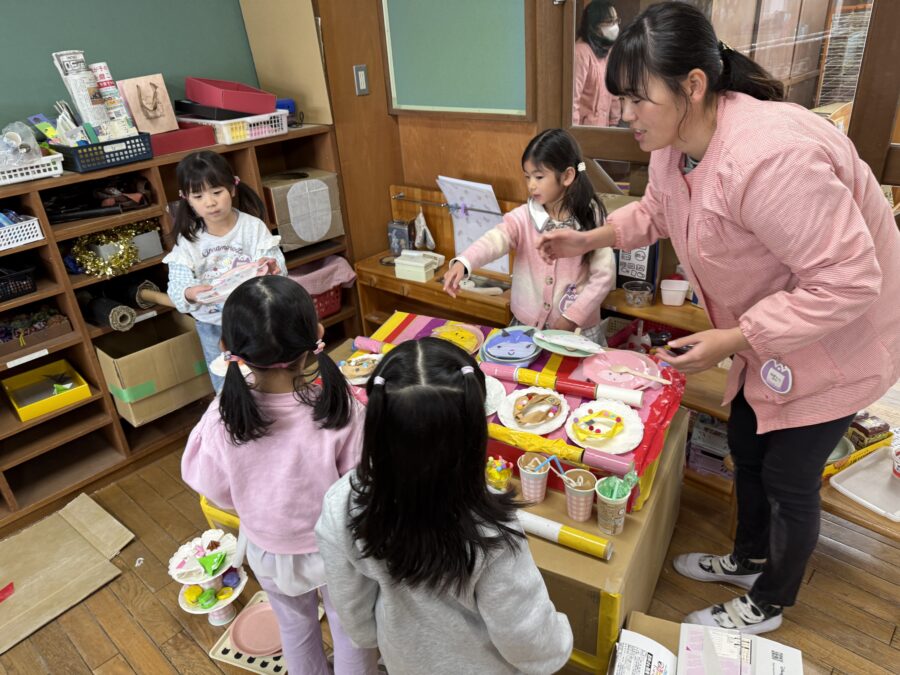 年長さんが心を込めて作り上げた「美山ランド」に、年少さんと年中さんをご招待しました。「いらっしゃいませ!」「ここが楽しいよ!」と、少し誇らしげな年長さん。優しく遊び方を教えてあげる姿から、お兄さん・お姉さんらしい頼もしさが感じられました。招待された年少さん、年中さんも目を輝かせながら楽しみ、会場は笑顔でいっぱいに。みんなで作り、みんなで楽しんだ美山ランド。心に残る素敵な時間となりました。