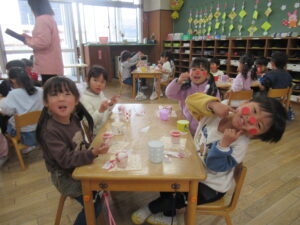 3月3日ひなまつり、お雛様の飾られた遊戯室でひなまつり会をしました。